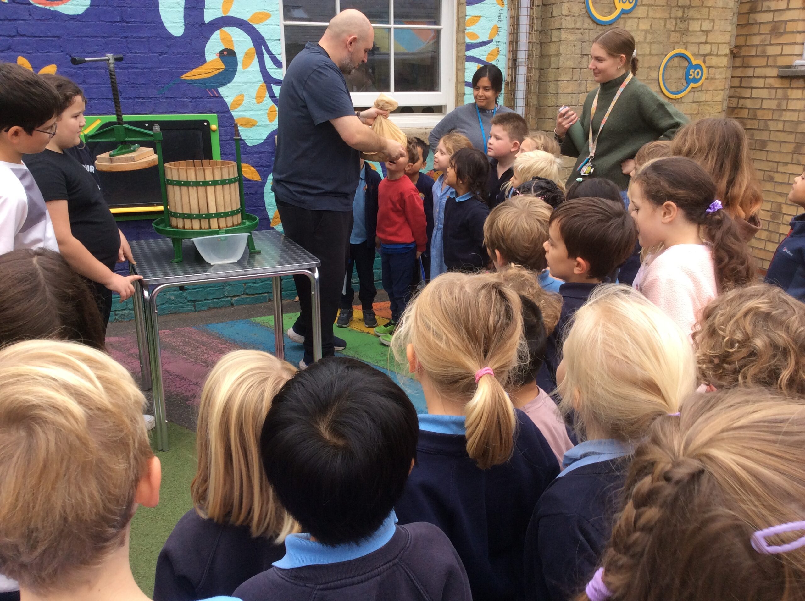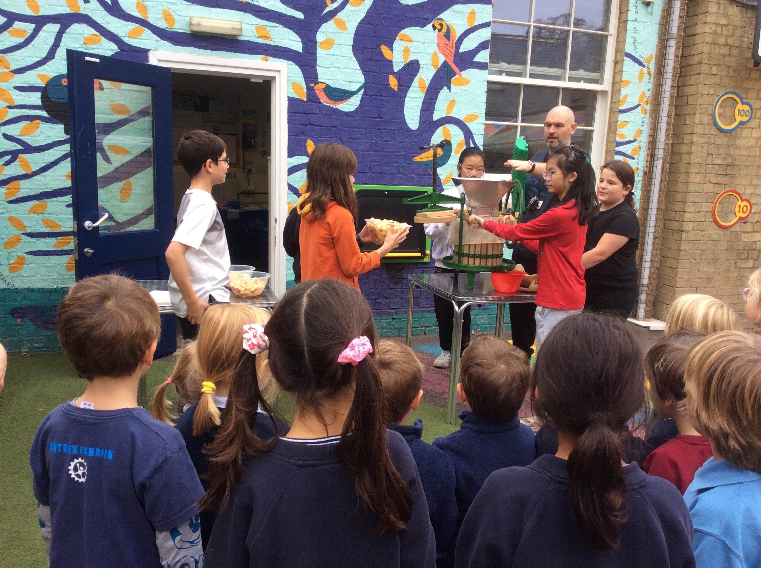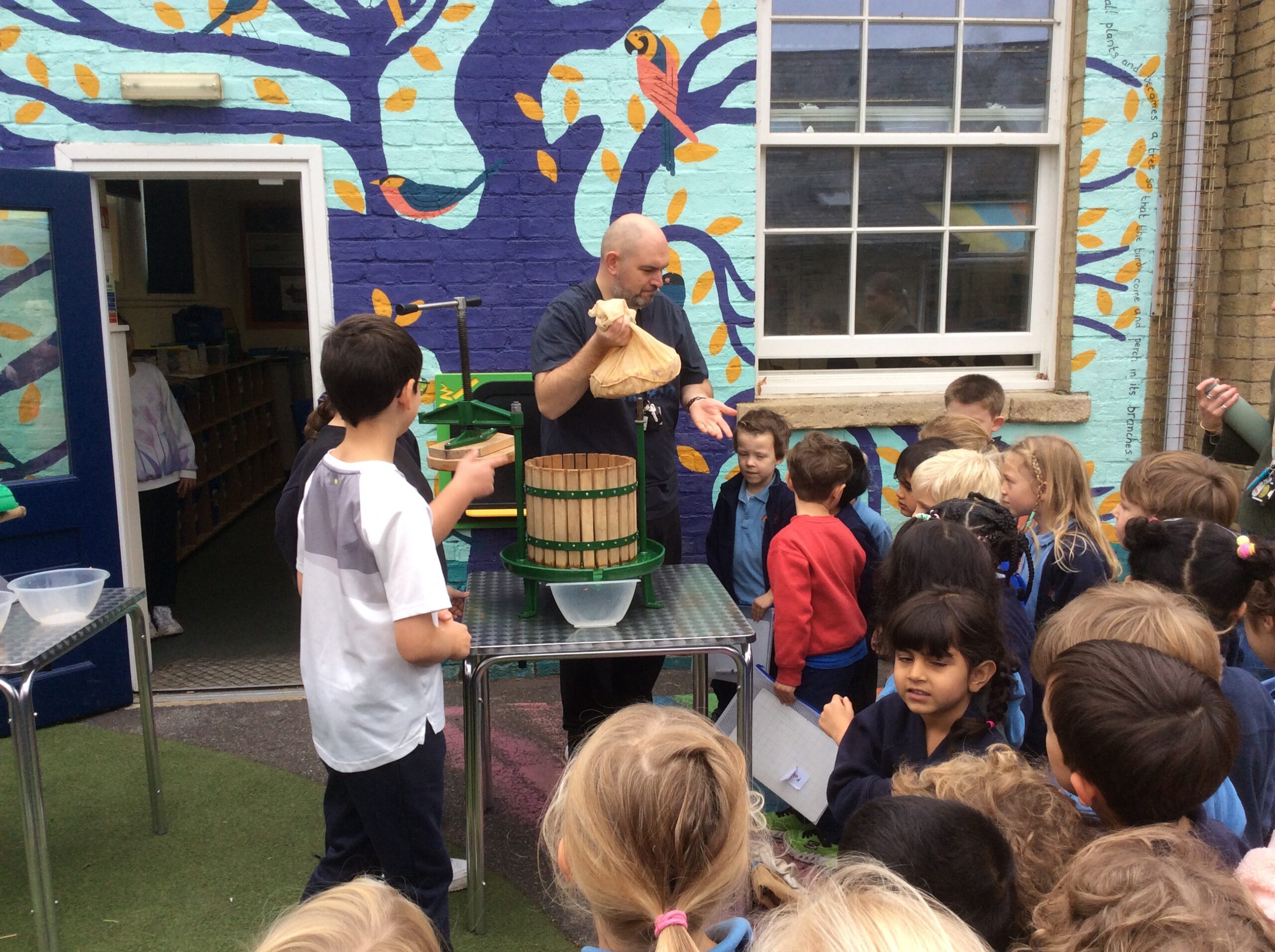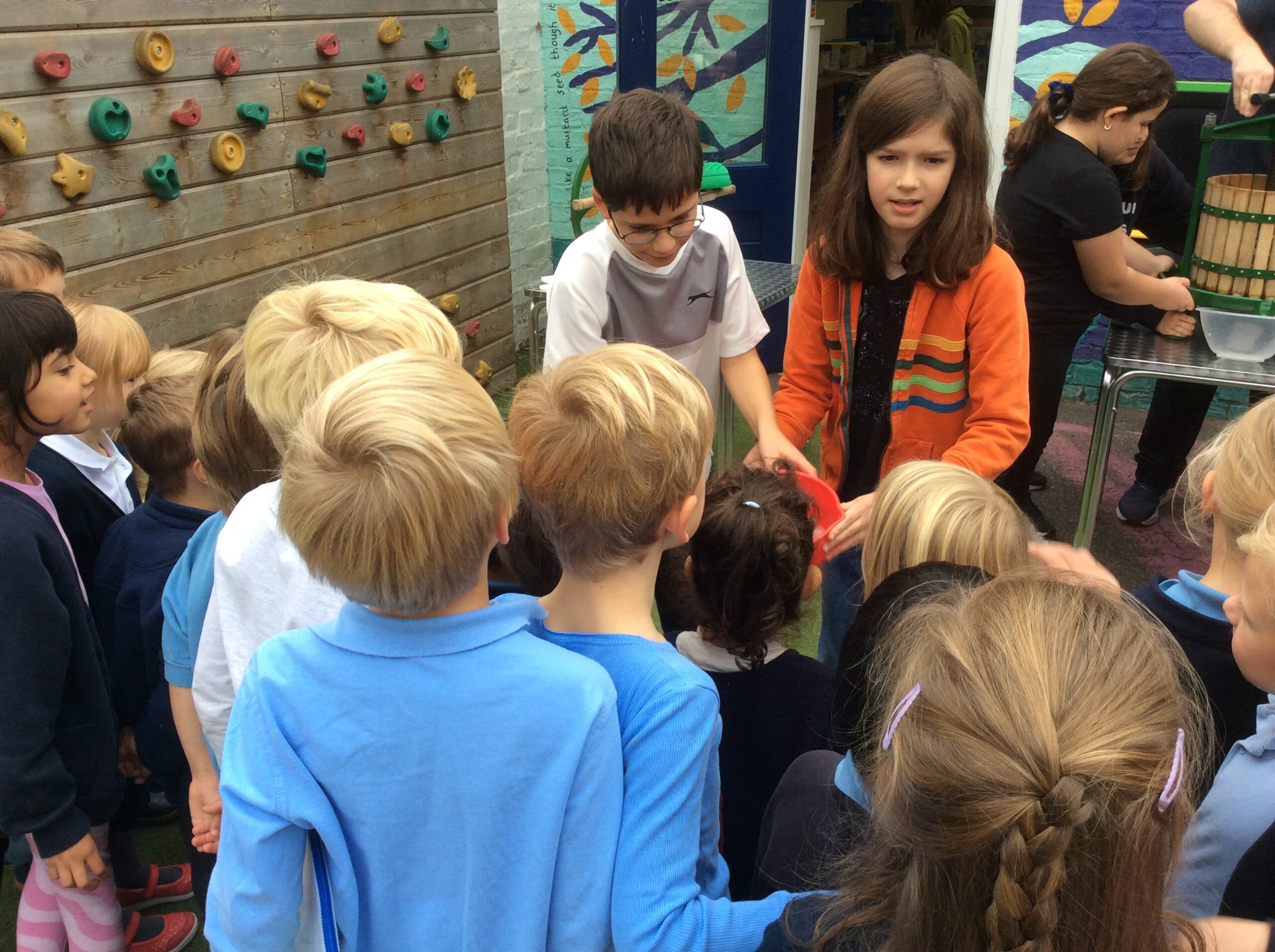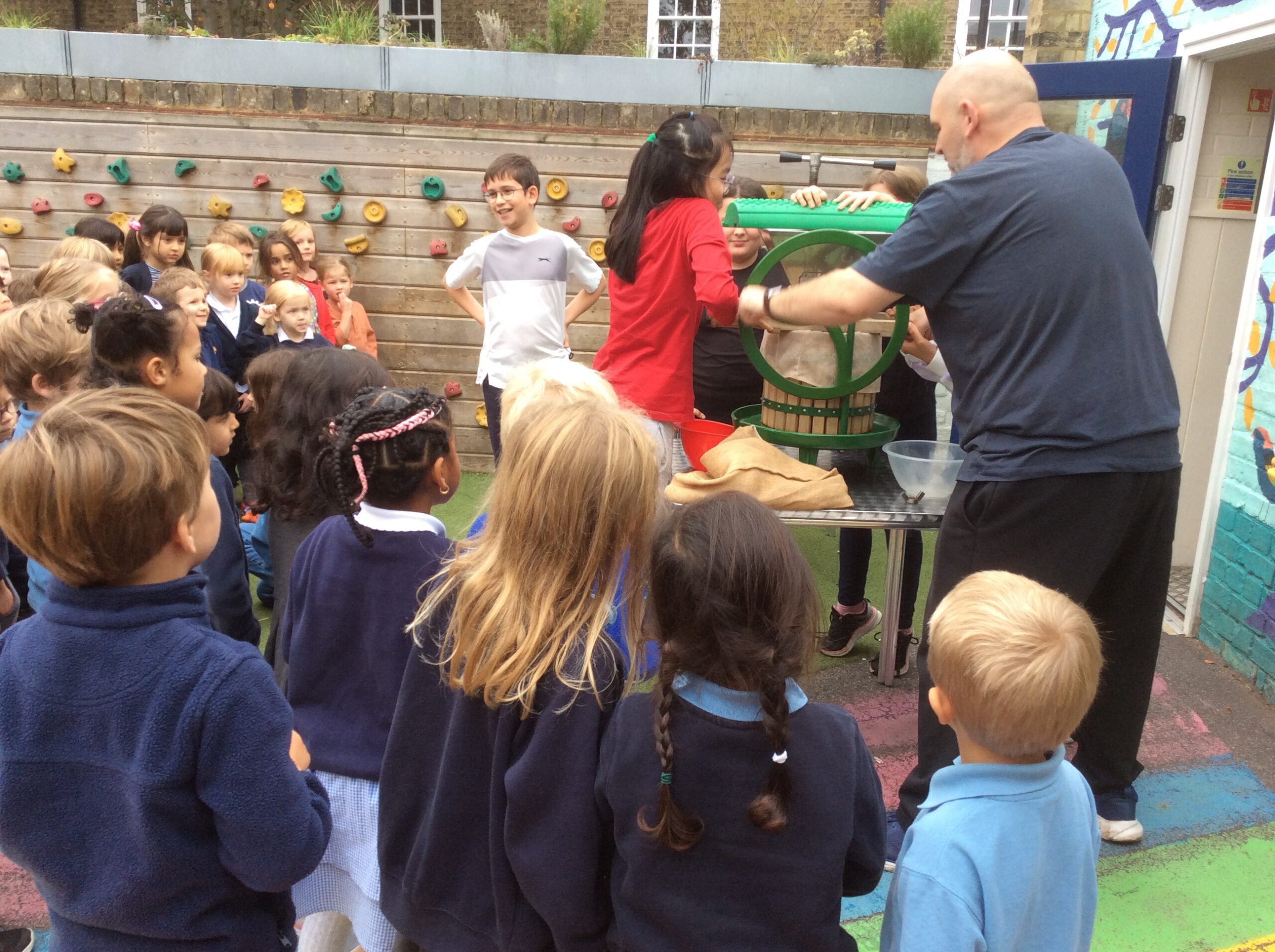 Mr Sharpe borrowed an apple press from Burwell House this week, and the children in Eagle Class have been learning how to make delicious apple juice. They have been writing instructions about how to use it, and today performed a really confident and interesting presentation to the younger children about it, complete with safety advice! Please see the photographs and video below!
