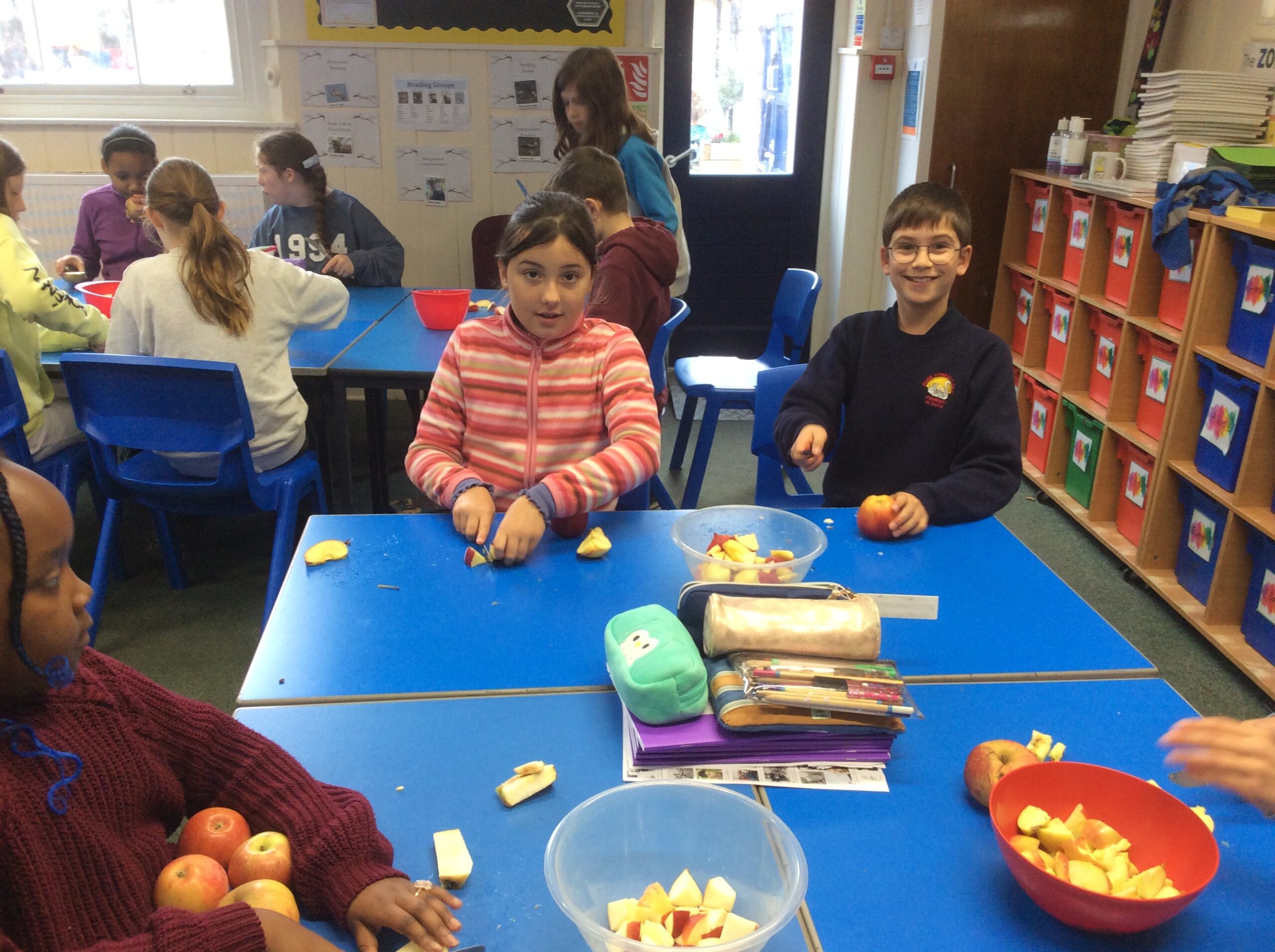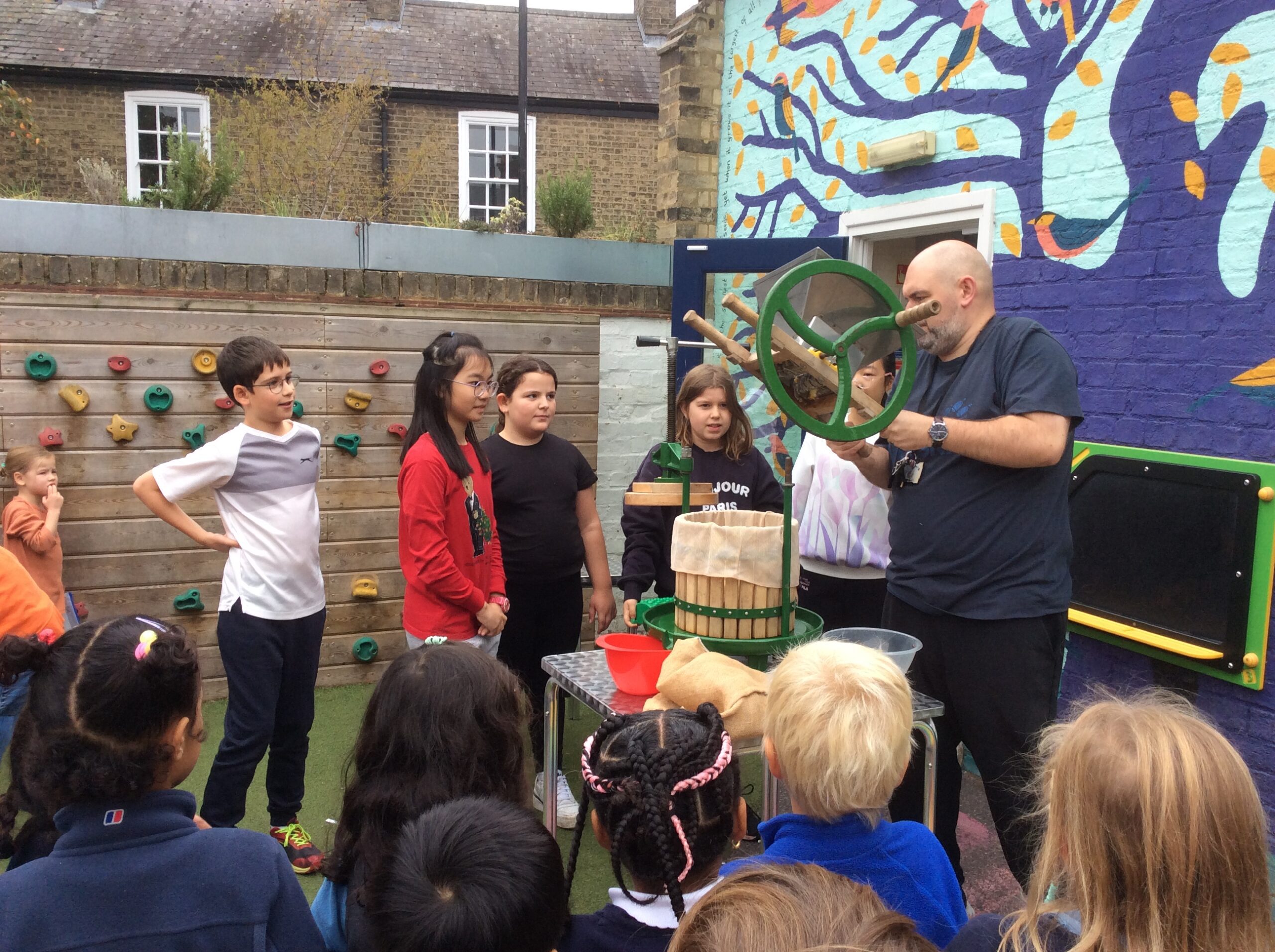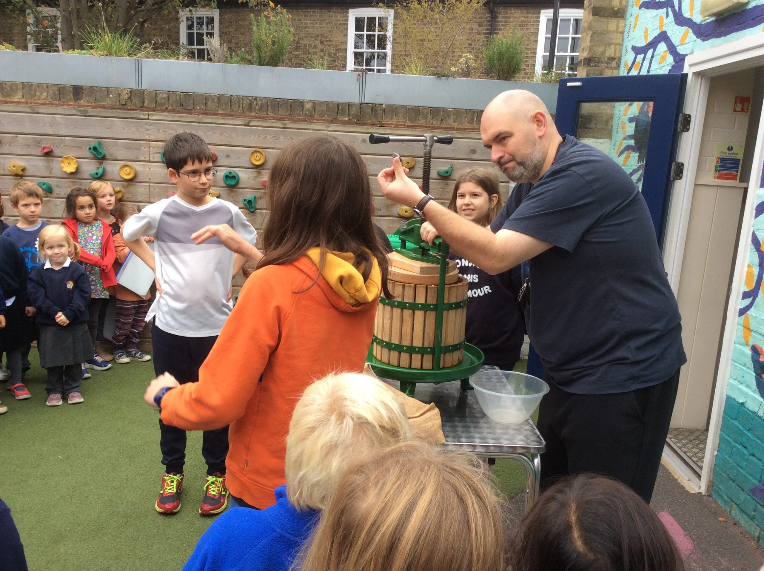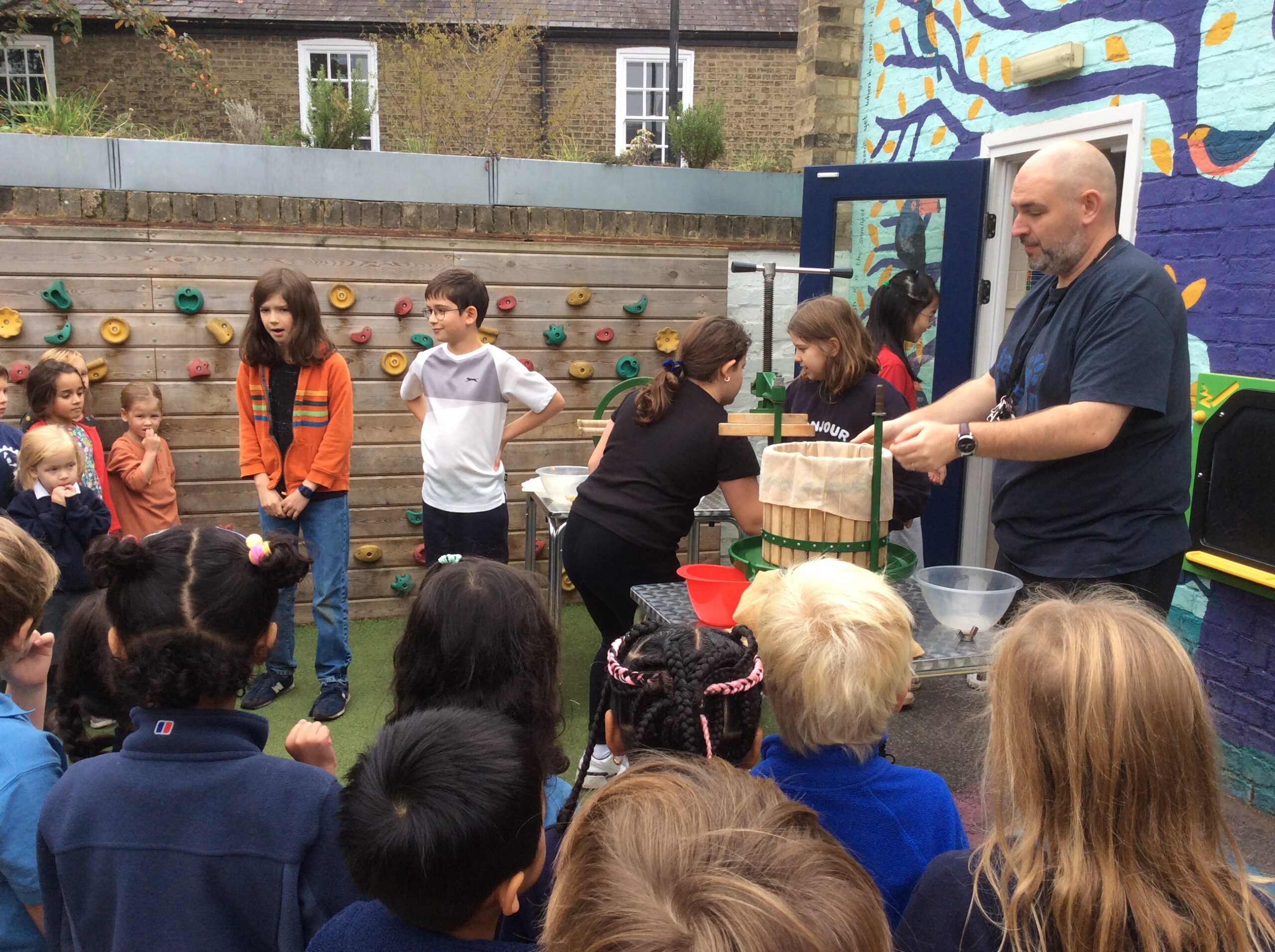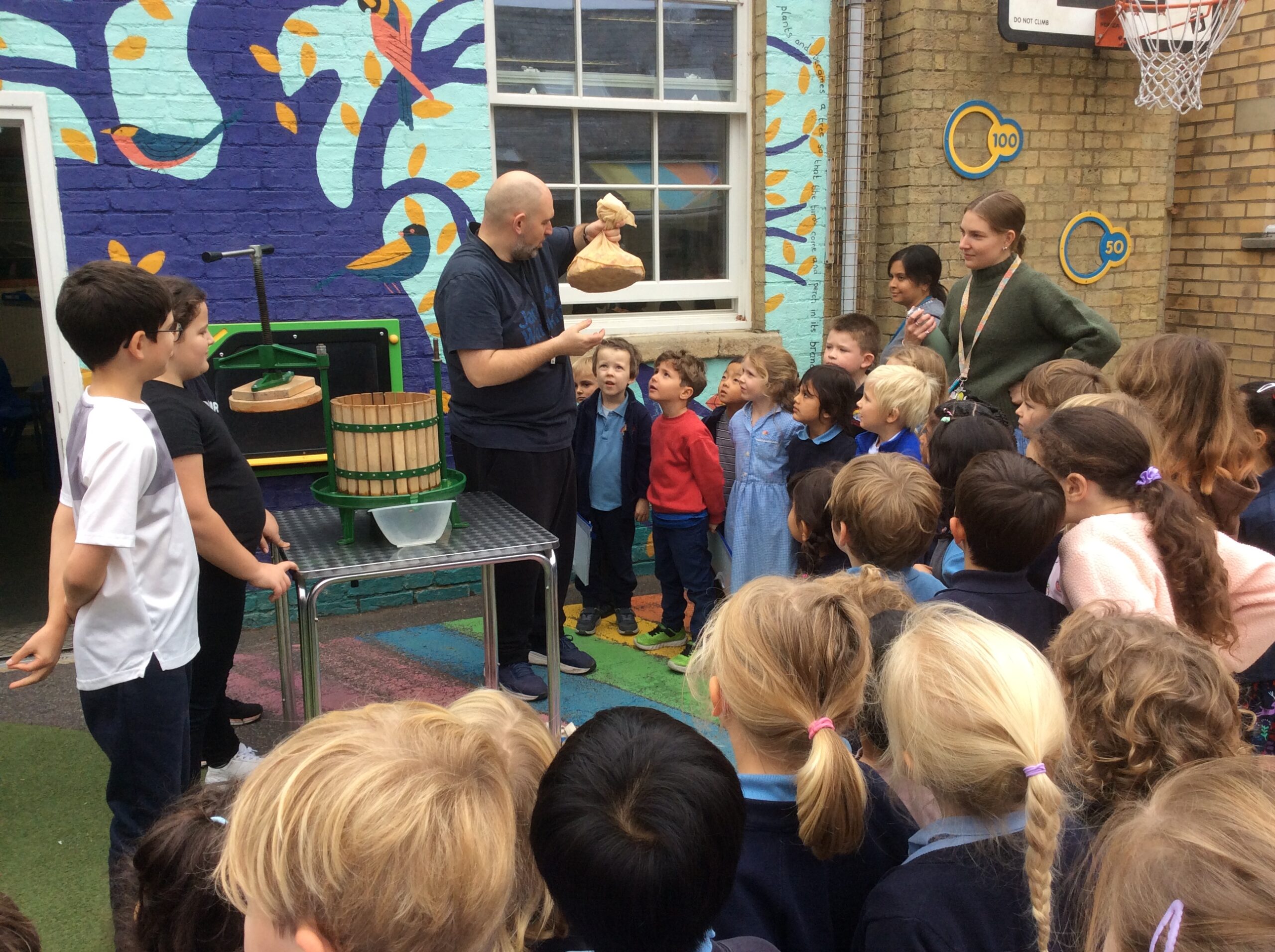 Mr Sharpe borrowed an apple press from Burwell House this week, and the children in Eagle Class have been learning how to make delicious apple juice. They have been writing instructions about how to use it, and today performed a really confident and interesting presentation to the younger children about it, complete with safety advice! Please see the photographs and video below!
