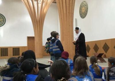 Eagle Class were lucky enough to visit the Cambridge Central Mosque this week. We travelled there by bus, arriving in good time for our tour. The children were enthralled to hear the information about the architecture, and the eco-friendly way it was built and is maintained, as well as inspiring facts about Islam and the practices of Muslim worshippers there. This knowledge was very helpful for their topic this term, which is ‘The Islamic World’. Please ask your children about this wonderful visit!