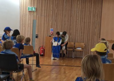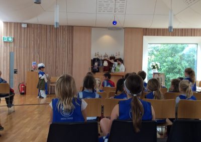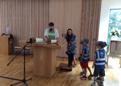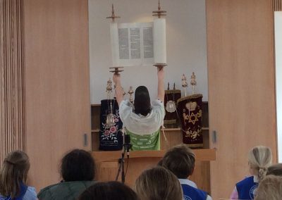Owl and Robin Class had a fascinating trip to the Beth Shalom Reform Synagogue this week. I was lucky enough to go along too! It was a beautiful, peaceful building, and we were all made very welcome. The children learned some of the features of the main worship room, and explored the treatment of the Torah. They also tasted challah bread and grape juice, learning about the Shabbat meal. Please see the pictures below!