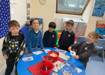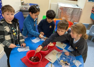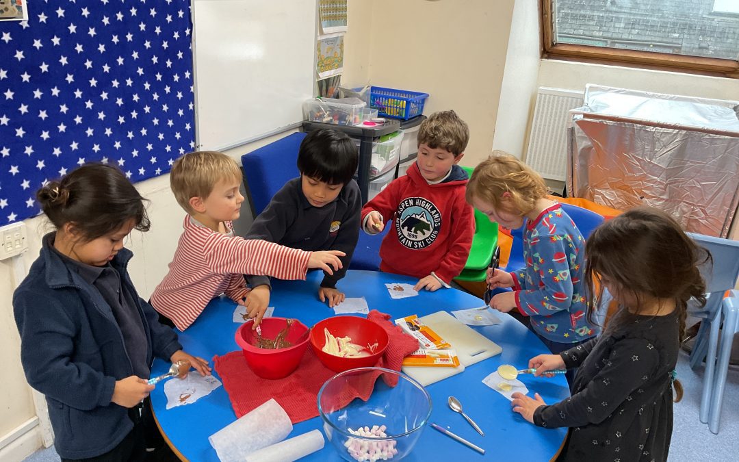 Owl Class had fun this week learning about ‘states of matter’: melting and freezing. They enjoyed feeling the ice melt, but even more, making and eating their own special chocolate buttons! Please see the pictures below!