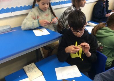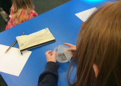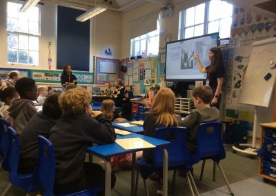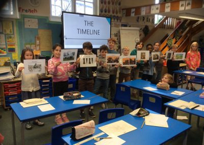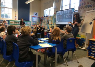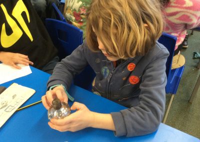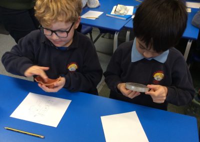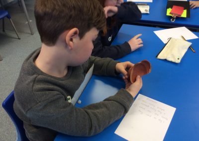 Two archaeologists, who had worked on the ‘dig’ at the Park Street Car Park site visited Park Street this week, to talk with the children about what the area was like in the past, and to show them some artefacts. They had some Roman Pottery, and a Viking coin that had been cut in half. The children were interested to find out that there was a Roman Road under the spot, and nearby a narrow lane called Jordan’s Yard that linked Bridge Street and Park Street. They showed us photographs of evidence that there was a blacksmith’s there, stabling for fifty horses, and possibly a butcher’s shop!